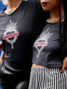 Le Cœur Sacré, emblème de Saintesprix est ici réinterprété avec piquant. Façon bijoux, il ornera parfaitement tes outfits.